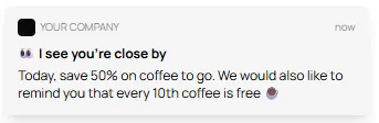 Automatic PUSH messages are automatically sent out when any loyalty customer is within 330 feet of your business location.