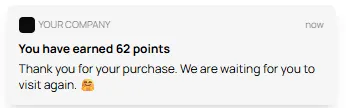 Automatic PUSH notifications with the transaction information is sent instantly at the time of sale. The message informs the client about their current loyalty and reward status.